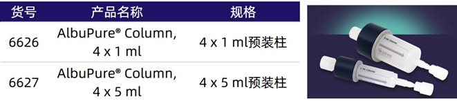 AlbuPure®是Astrea Bioseparations和Albumedix公司合作開發(fā)的白蛋白親和層析填料,填料基架是粒徑均一的高交聯(lián)瓊脂糖,配基是合成的三嗪化合物,具體高流速、高動態(tài)結(jié)合載量、強(qiáng)化學(xué)耐受性等特點,主要用于白蛋白融合蛋白的純化。AlbuPure®的性能參數(shù)如下表所示。