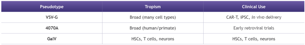 重組慢病毒可以通過(guò)不同的包膜蛋白來(lái)提高轉(zhuǎn)導(dǎo)效率和改變特異性,從而直接影響下游純化策略。