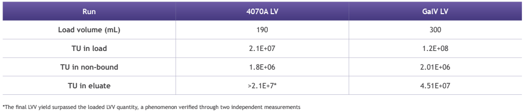 篩選裝置上樣量20ml,測(cè)得填料載量為3E+8 IU/ml。