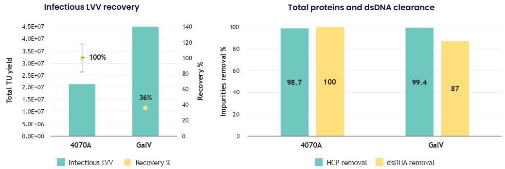 - LentiHERO®成功實(shí)現(xiàn)了非VSV-G慢病毒(4047A:100%,GalV:36%)的高效純化。