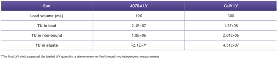 篩選裝置上樣量15ml,測(cè)得填料載量為1.5E+10 IU/ml。