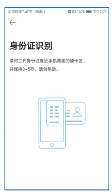 a.在身份證識(shí)別界面,將居民身份證靠近手機(jī)背部讀卡區(qū),并保持3~5秒不要移動(dòng),識(shí)別成功進(jìn)入人像采集界面