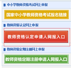 全國統(tǒng)考合格申請人登錄中國教師資格網(wǎng)(http://www.jszg.edu.cn)后,從教師資格認(rèn)定申請人網(wǎng)報(bào)入口進(jìn)入申請教師資格認(rèn)定。