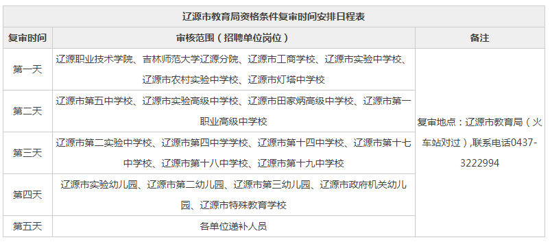 3.遼源市教育局資格條件復審安排日程表