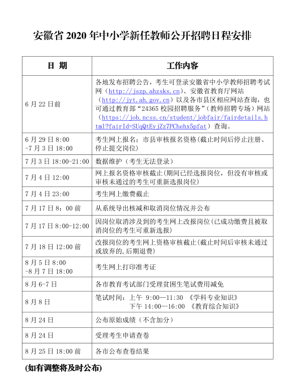 附件1.安徽省2020年中小學(xué)新任教師公開招聘日程安排