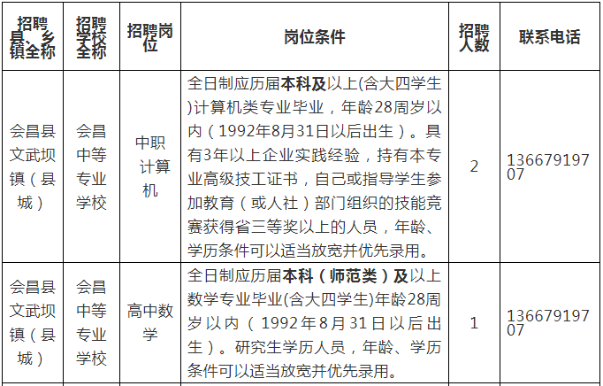 3.招聘公告相關事項由會昌中等專業(yè)學校負責解釋。