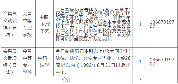 1.共計招聘7人。其中,計算機2人、數學1人、數控技術1人、法學1人、無人飛機1人、化學工藝1人。