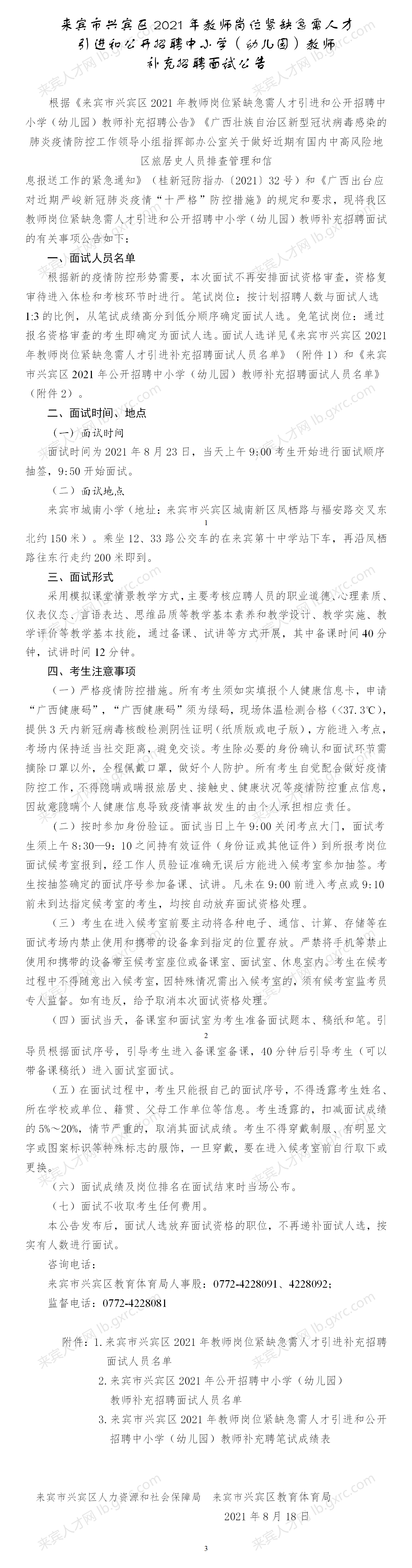 附件:來賓市興賓區(qū)2021年公開招聘中小學(幼兒園)教師補充招聘面試人員名單.xlsx |