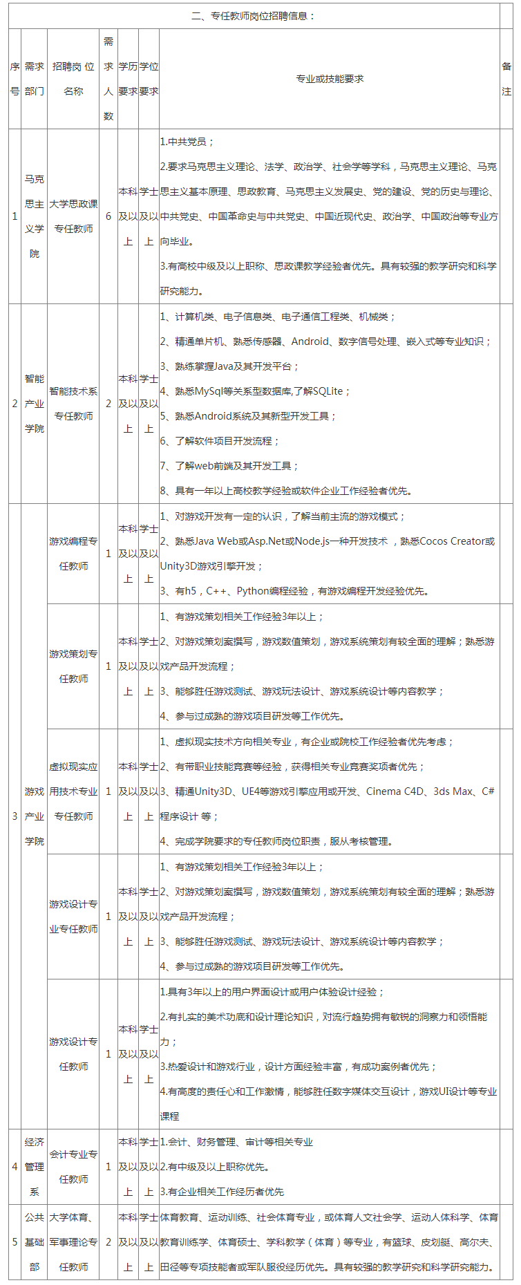 二、招聘崗位