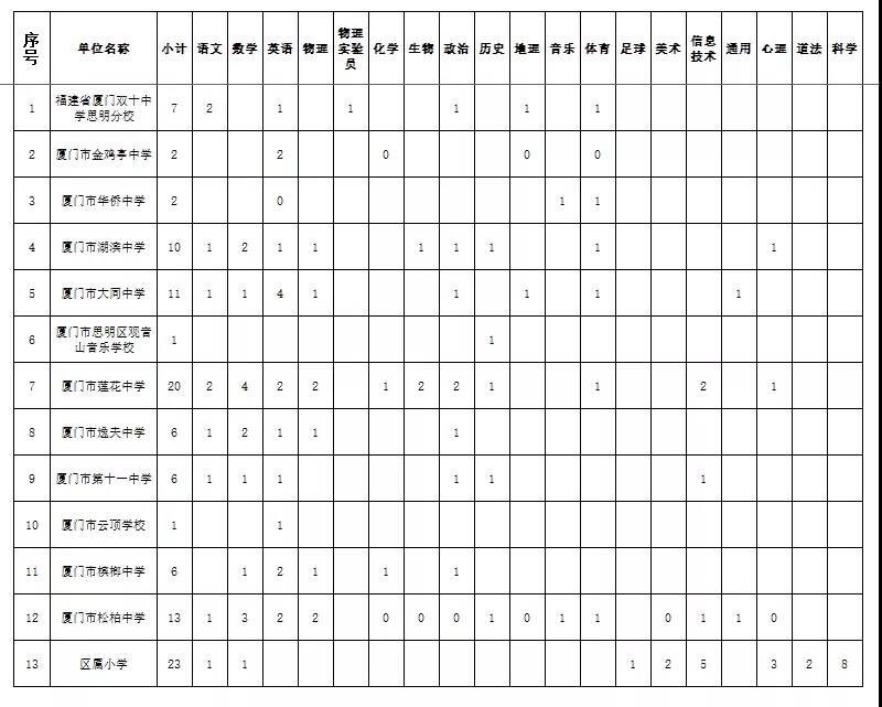 附件2:2021年廈門市思明區(qū)區(qū)屬學(xué)校招聘計(jì)劃