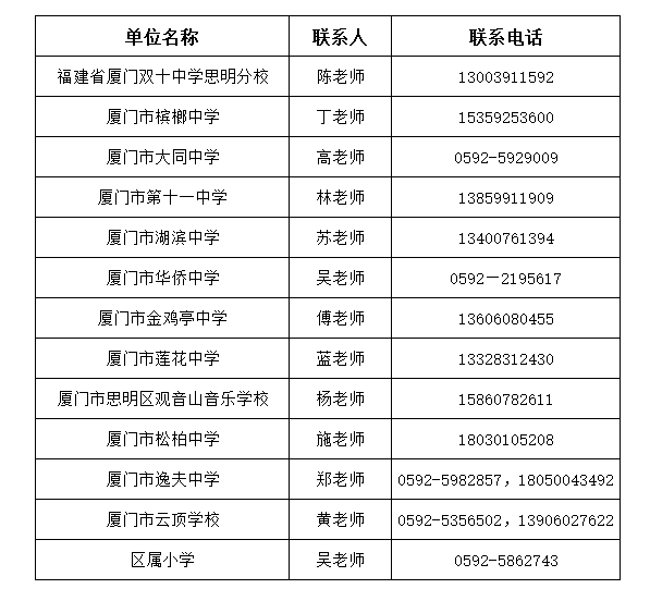 附件4:2021年廈門市思明區(qū)教育局區(qū)屬學校校園招聘工作聯(lián)系人