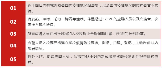 所有應聘人員應如實報告?zhèn)€人旅居情況和身體健康狀況,不得瞞報、謊報。如有,取消錄取資格,責任自負。