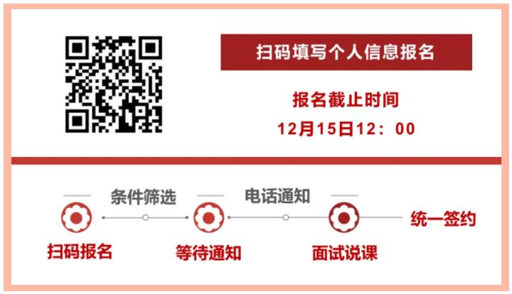 有意應(yīng)聘者請(qǐng)于12月15日之前掃碼填報(bào)信息并等待后續(xù)通知。