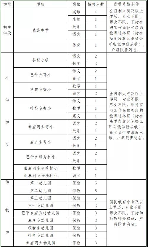 青海曲麻萊縣教師招聘安排
