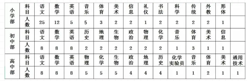 (三)高中部教師年薪總收入為15-50萬,各學(xué)科獲得省級或省級以上優(yōu)秀教師稱號的老師薪資可以面議。
