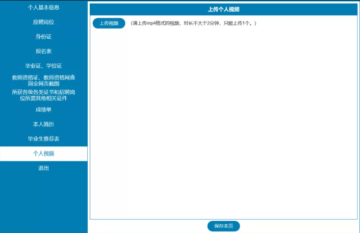 ⑨面談以“如何成為一名好老師”為題,錄制2分鐘視頻(嚴(yán)禁透露個(gè)人信息,始終保持本人正面上半身入鏡,視頻格式為mp4,大小不超過100MB,視頻只能上傳1個(gè),提交前可在線預(yù)覽,如感覺效果不好,可重新錄制再次上傳;報(bào)名成功后則無法再次替換原視頻)。報(bào)名平臺界面如下: