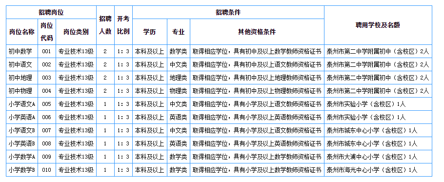 海陵區(qū)教育系統(tǒng)2022年校園公開招聘教師崗位表