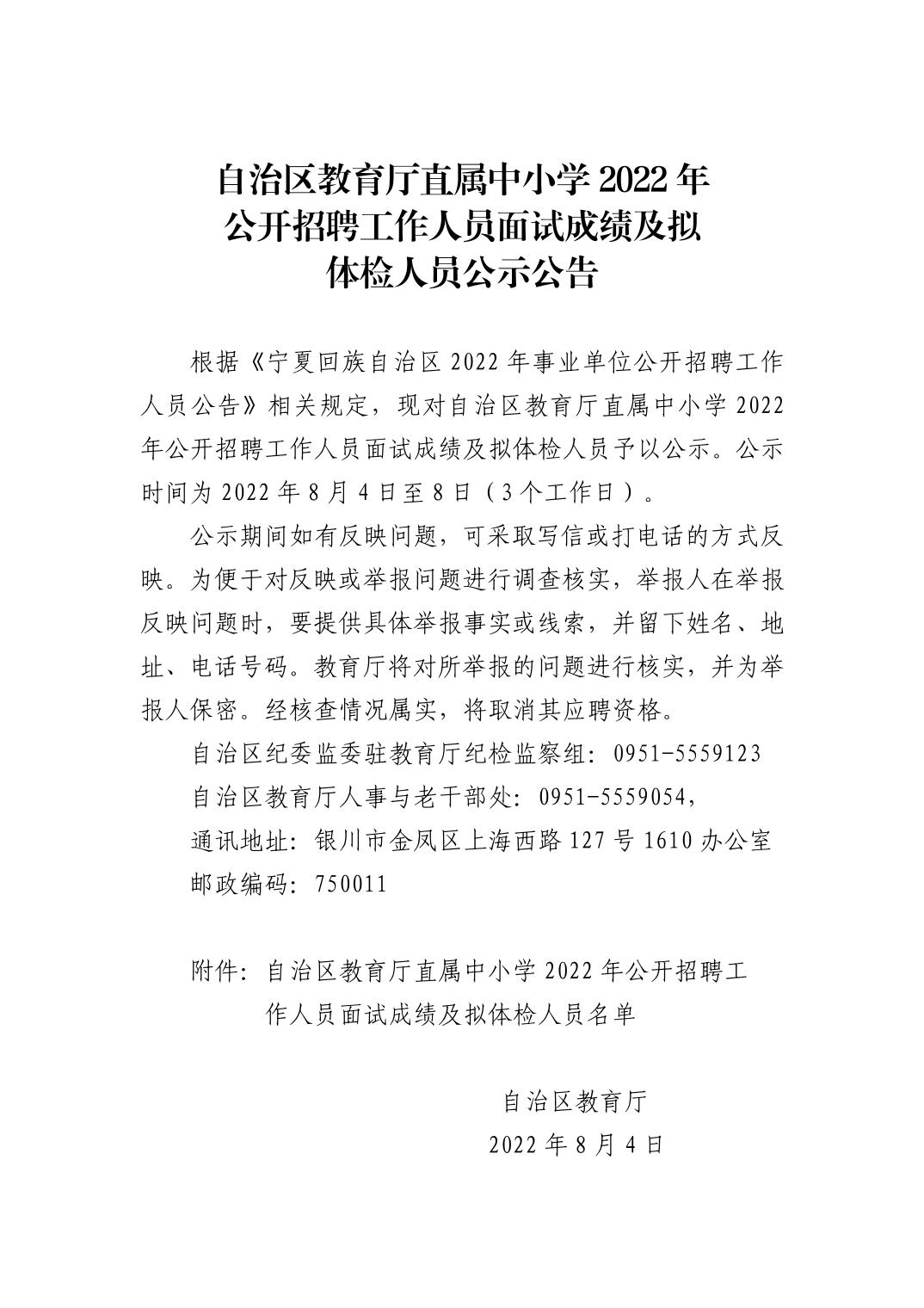 原文標(biāo)題:自治區(qū)教育廳直屬中小學(xué)2022年公開招聘工作人員面試成績及擬體檢人員公示公告