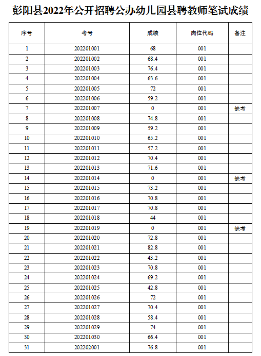 文章標(biāo)題:彭陽(yáng)縣2022年公開(kāi)招聘公辦幼兒園縣聘教師筆試成績(jī)公示