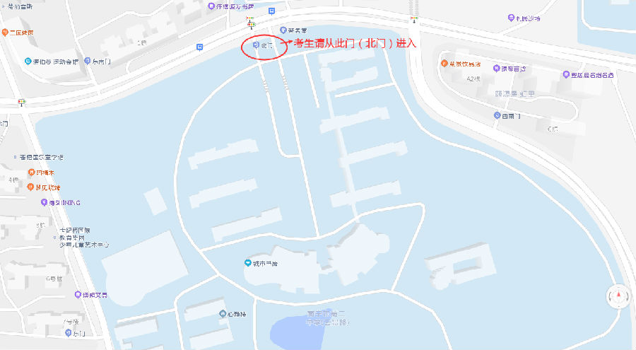 注意:考生僅能從學校北門進入考點。學校北門方位見下圖,請考生提前規(guī)劃路線,避免耽誤考試。