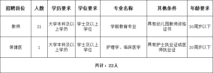 西咸新區(qū)灃東新城第七幼兒園2023年招聘崗位需求表