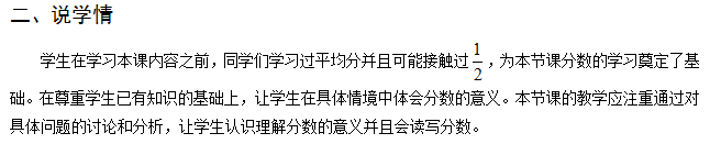 而教學(xué)重難點(diǎn)方面是能初步體會(huì)分?jǐn)?shù)幾分之一的含義,建立分?jǐn)?shù)的初步概念,而建構(gòu)起幾分之一的表象,理解分?jǐn)?shù)的含義為教學(xué)難點(diǎn)。