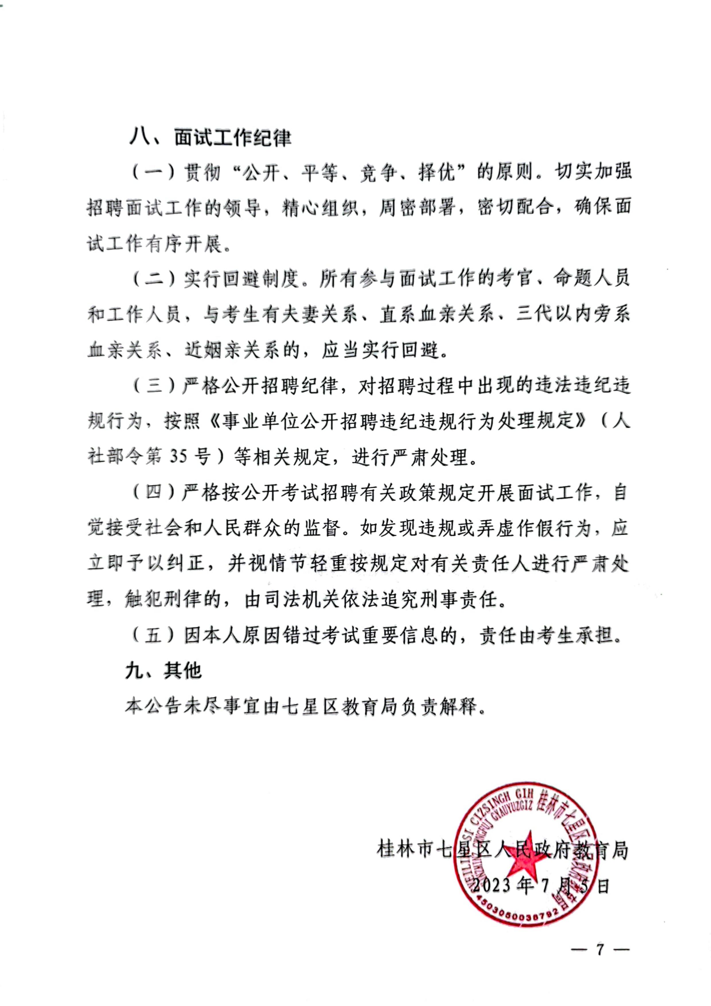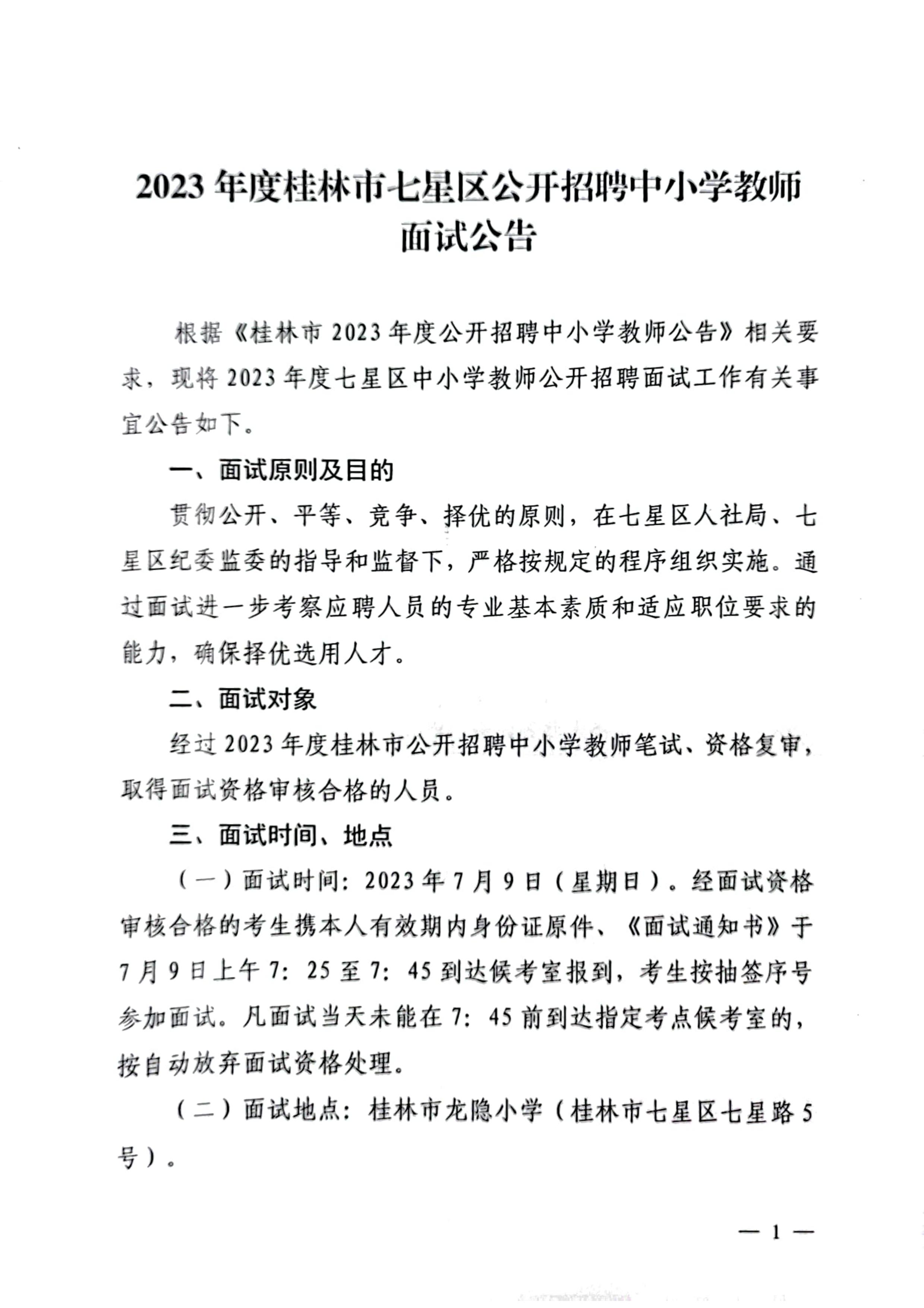 原文標(biāo)題:2023年度桂林市七星區(qū)公開招聘中小學(xué)教師面試公告_公告公示_桂林市教育局