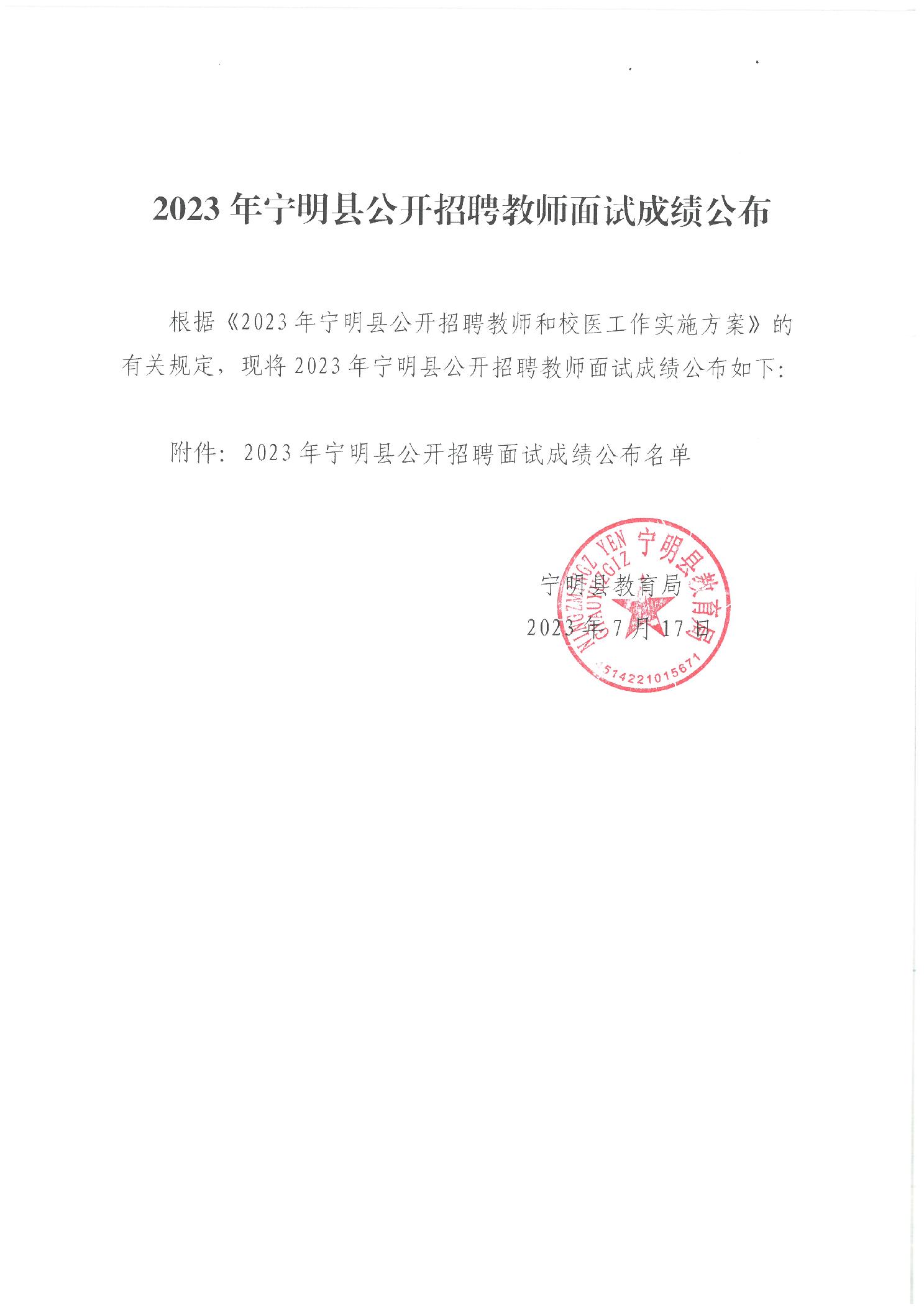 原文標(biāo)題:2023年寧明縣公開招聘教師面試成績(jī)公布