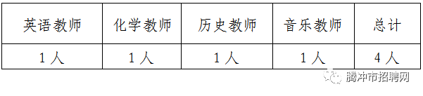 高中英語教師1名,高中化學(xué)教師1名,高中歷史教師1名,高中音樂教師1人。