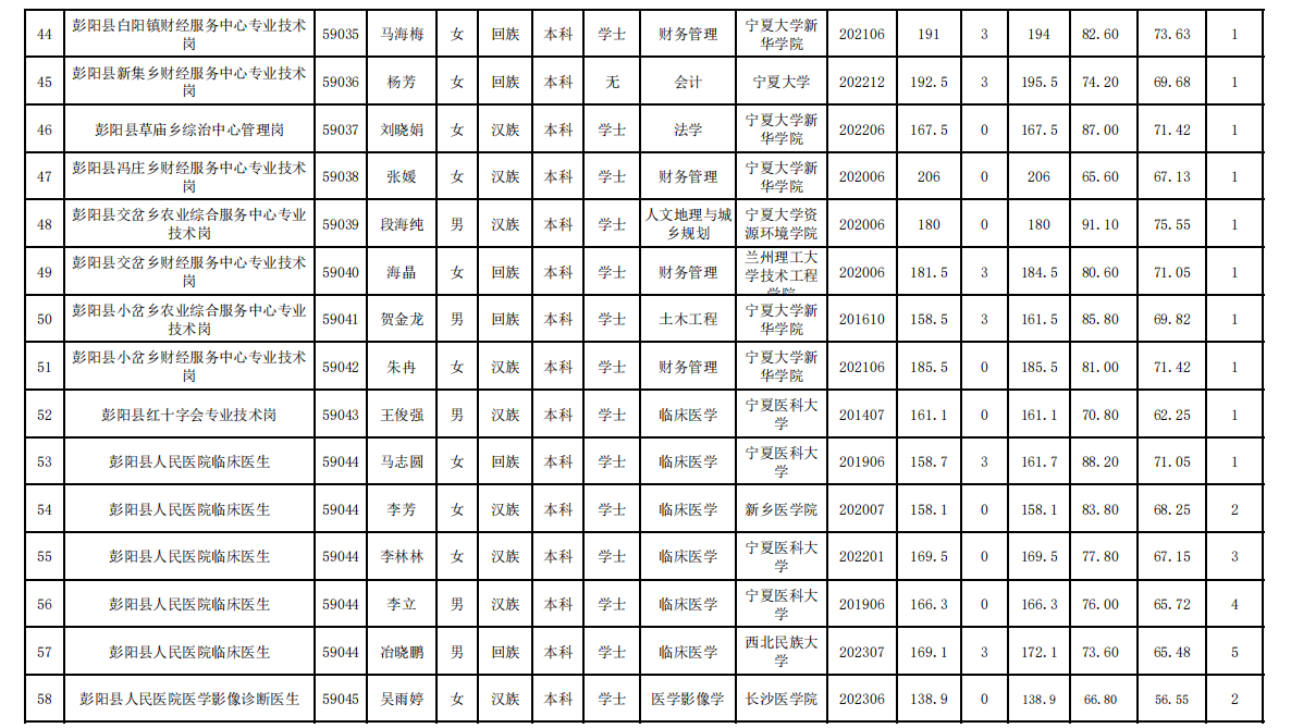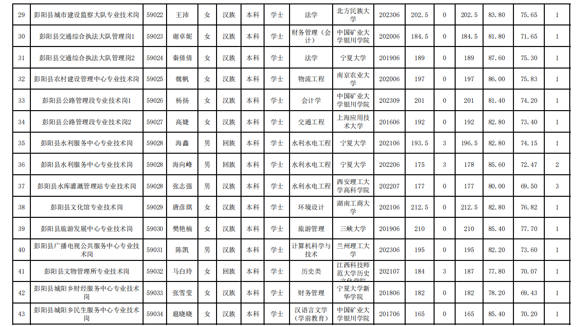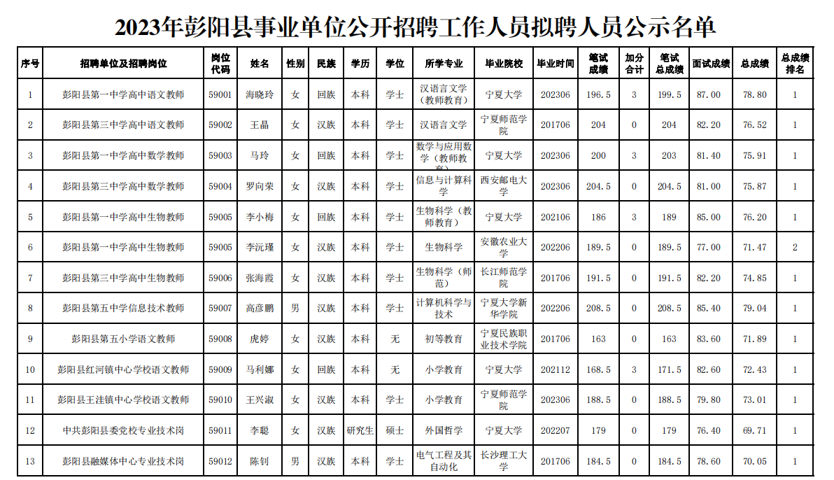 原文標題:2023年彭陽縣事業(yè)單位公開招聘工作人員擬聘用人員公示公告
