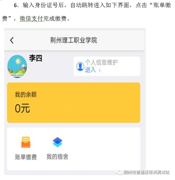 6.特別提示:荊州市普通話培訓(xùn)測(cè)試工作站未與其它任何社會(huì)培訓(xùn)機(jī)構(gòu)、網(wǎng)站合作代報(bào)名、代繳費(fèi)、代培訓(xùn)和測(cè)試等服務(wù),請(qǐng)廣大考生謹(jǐn)防上當(dāng)受騙。報(bào)名后務(wù)必關(guān)注荊州市普通話培訓(xùn)測(cè)試站微信公眾號(hào)(Jzspthcsz)或荊州理工職業(yè)學(xué)院培訓(xùn)中心網(wǎng)站,所有相關(guān)事宜均通過微信公眾號(hào)和培訓(xùn)中心網(wǎng)站發(fā)布。