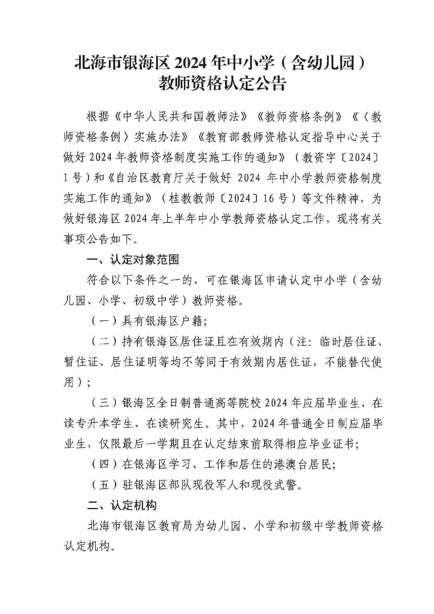 原文標題:北海市銀海區(qū)2024年中小學(含幼兒園)教師資格認定公告