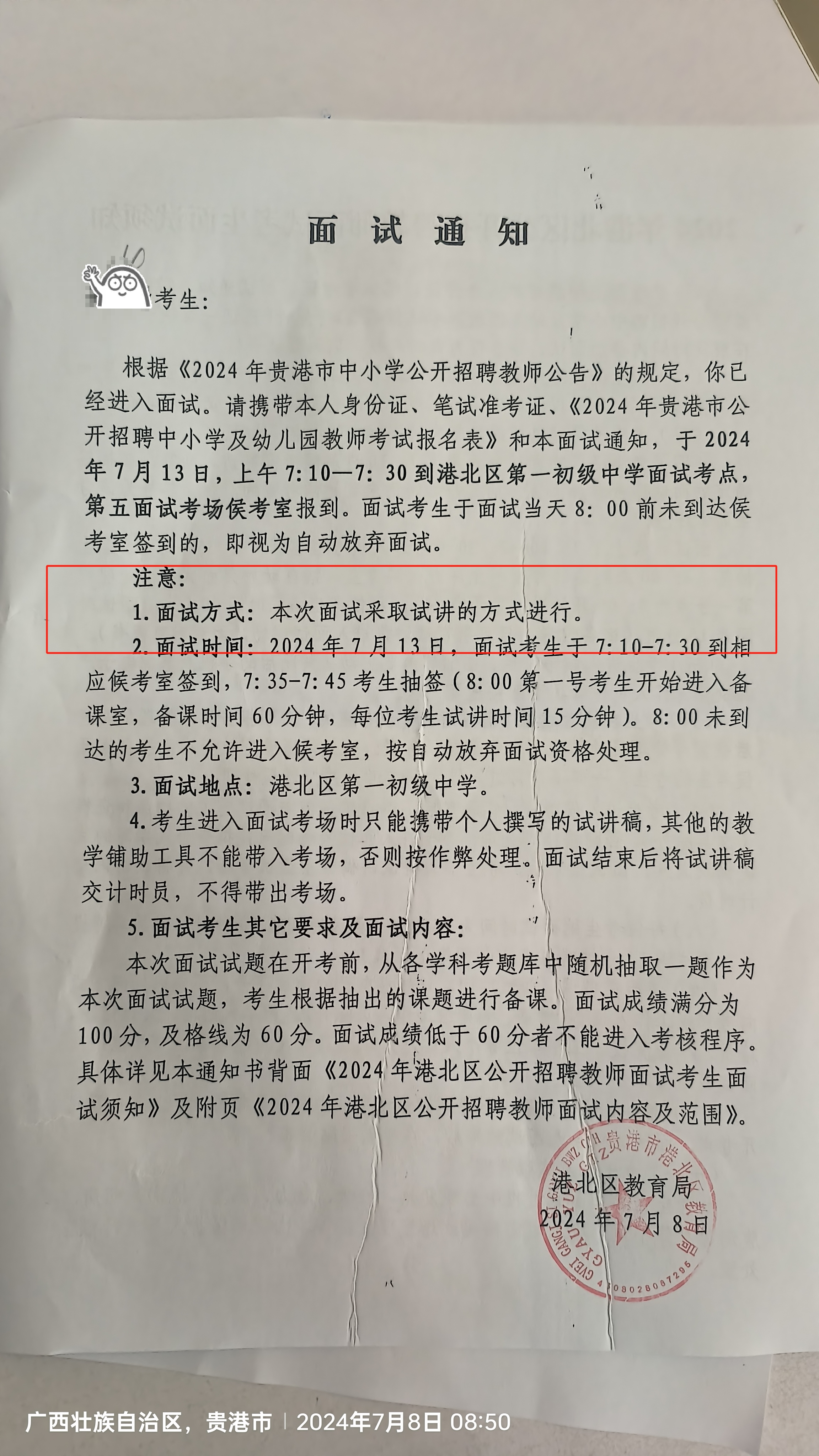| 港北區(qū) | 點擊查看 | 5月29日-31日 | 通知書領取 面試通知書 面試須知 面試范圍 |