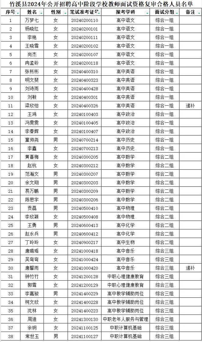 報考竹溪縣2024年公開招聘高中階段學(xué)校教師崗位38人,分3個組。