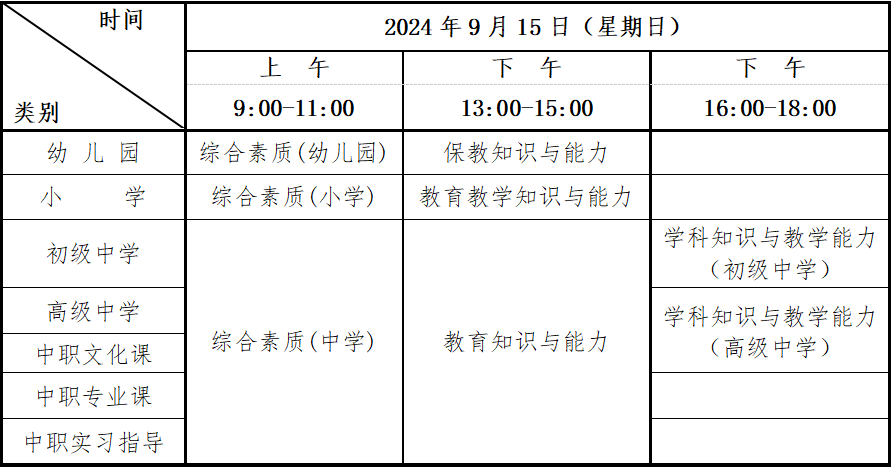 3.選擇初中、高中、中職文化課類別中“心理健康教育”“日語”“俄語”學(xué)科的考生,筆試科目三《學(xué)科知識與教學(xué)能力》暫不考試,結(jié)合面試一并考核;選擇小學(xué)類別中“心理健康教育”“信息技術(shù)”“小學(xué)全科”的考生,筆試科目為《綜合素質(zhì)》(代碼:201)和《教育教學(xué)知識與能力》(代碼:202)。