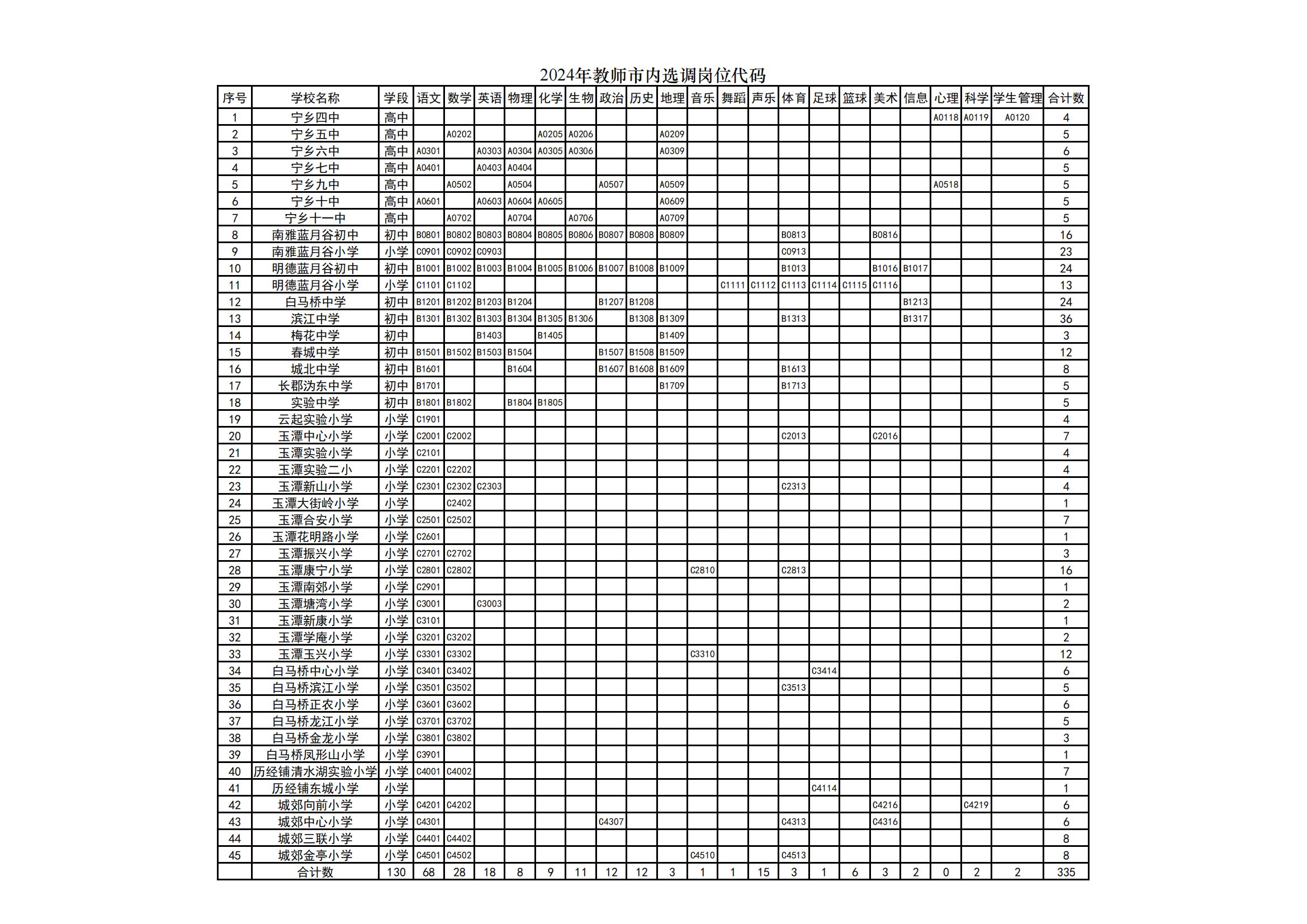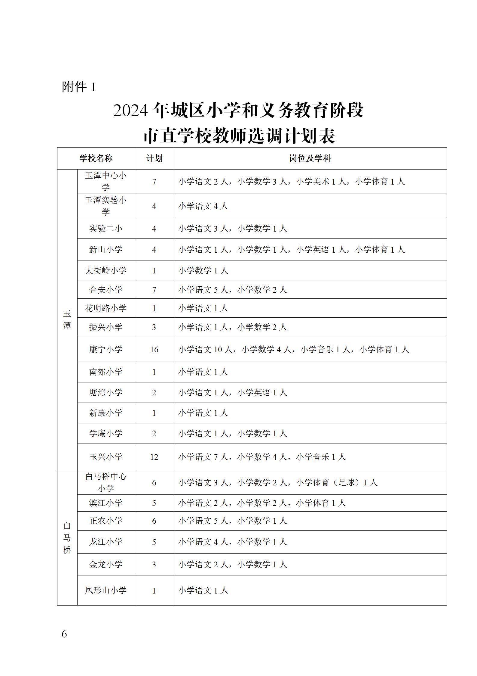 為進一步優(yōu)化我市教師隊伍,經(jīng)研究決定,面向我市教育系統(tǒng),選調(diào)300名教師充實到玉潭、白馬橋、城郊、歷經(jīng)鋪四個街道所屬小學(xué)和長郡溈東中學(xué)、南雅藍月谷學(xué)校、明德藍月谷學(xué)校、城北中學(xué)、春城中學(xué)、梅花中學(xué)、白馬橋中學(xué)、濱江中學(xué)、實驗中學(xué)、云起實驗小學(xué)任教,選調(diào)35名教師充實到鄉(xiāng)鎮(zhèn)市直高中任教,現(xiàn)將有關(guān)事項公告如下: