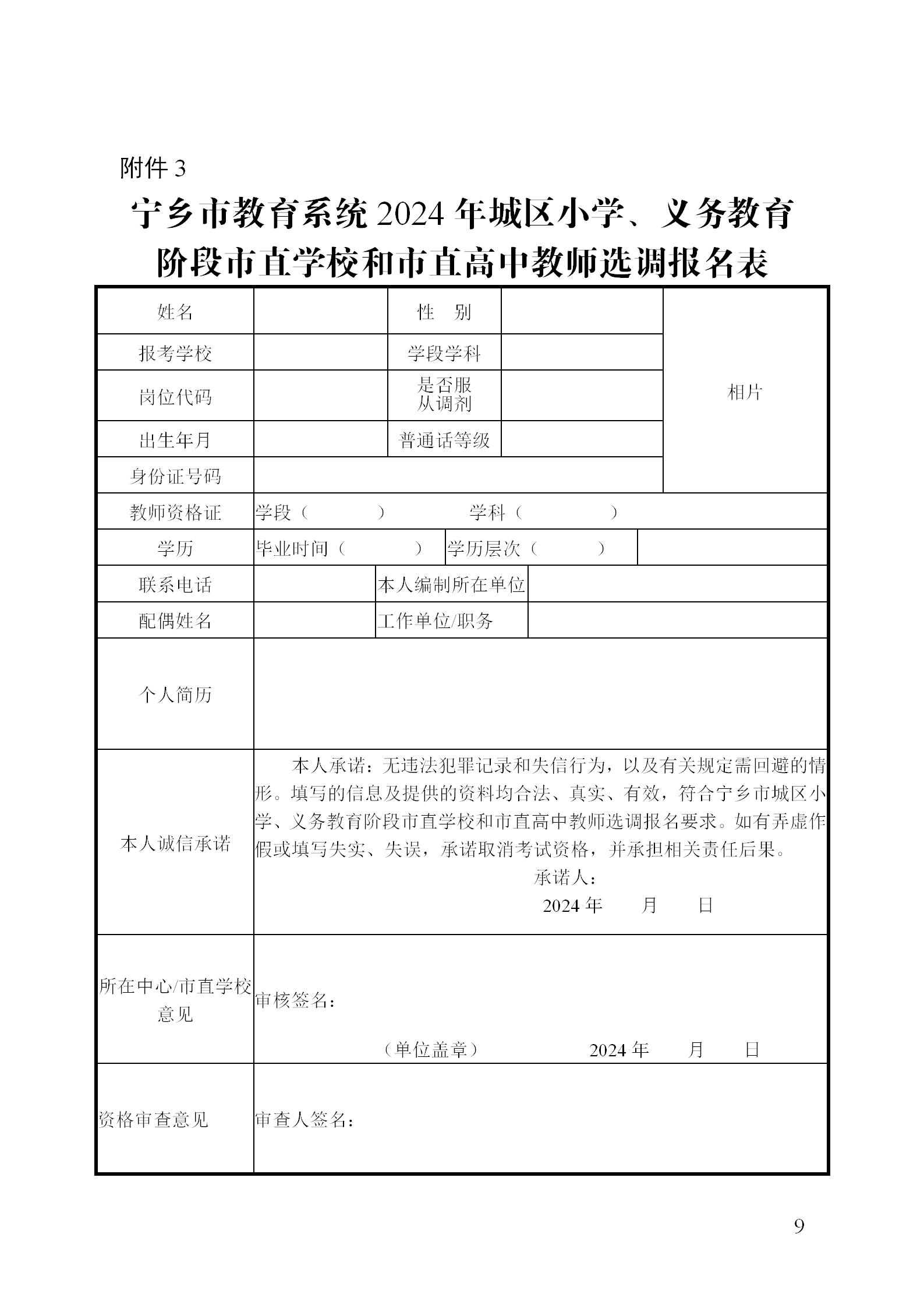 附件3:寧鄉(xiāng)市教育系統(tǒng)2024年城區(qū)小學(xué)、義務(wù)教育階段市直學(xué)校和市直高中教師選調(diào)報名表.docx |