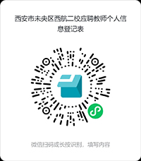 ②即日起至2024年7月25日,應(yīng)聘者填寫《西安市未央?yún)^(qū)西航二校應(yīng)聘教師個人簡歷》(掃描下方二維碼獲取個人簡歷模板,未使用簡歷模板視為簡歷不合格)發(fā)送至郵箱2628071063@qq.com。郵件主題注明:學(xué)科+姓名+電話。