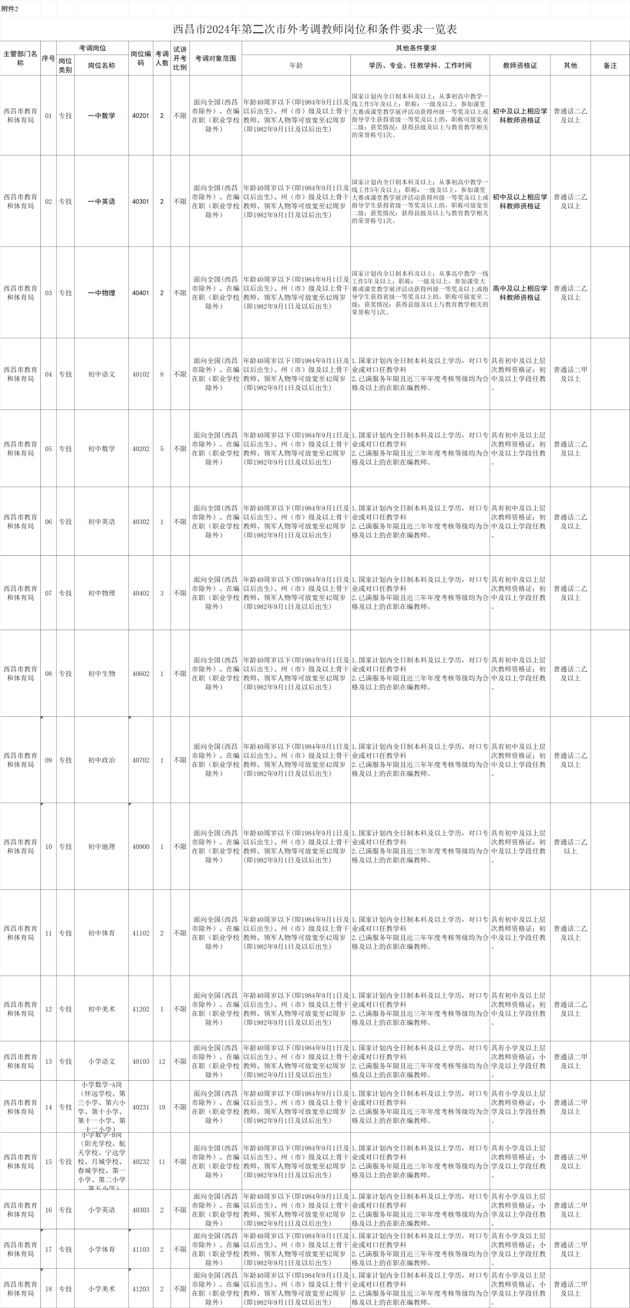 1.考調(diào)范圍:面向全國(西昌市除外)公立學(xué)校(職業(yè)學(xué)校除外)在編在職教師。