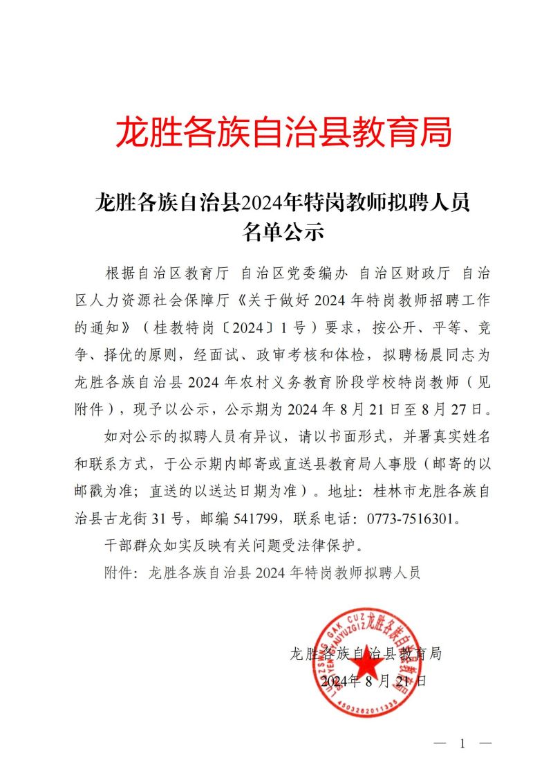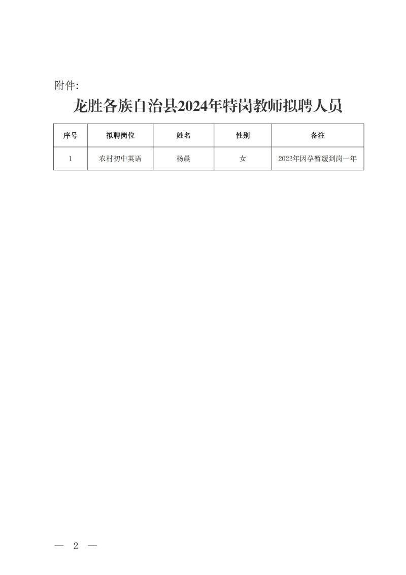 原文標(biāo)題: 龍勝各族自治縣2024年特崗教師擬聘人員名單公示