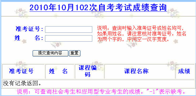 2010年10月102次自考成績(jī)查詢(可查四川省)