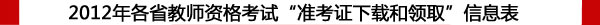 2012年教師資格證考試已拉開帷幕。以下是根據(jù)各地考試通知整理出的關于各省考試準考證下載或領取時間以供各位考生參考及時下載準考證。